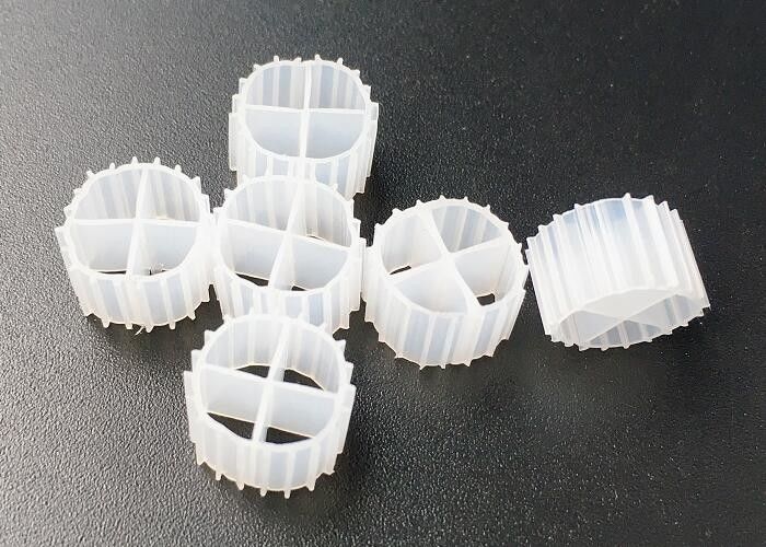 সাদা রঙ 11 * 7 মিমি পুনরায় সঞ্চালন জলজ উদ্ভিদ সিস্টেম এমবিবিআর ভাসমান ক্যারিয়ার এইচডিপিই নিরাপদ র্যাম উপাদান